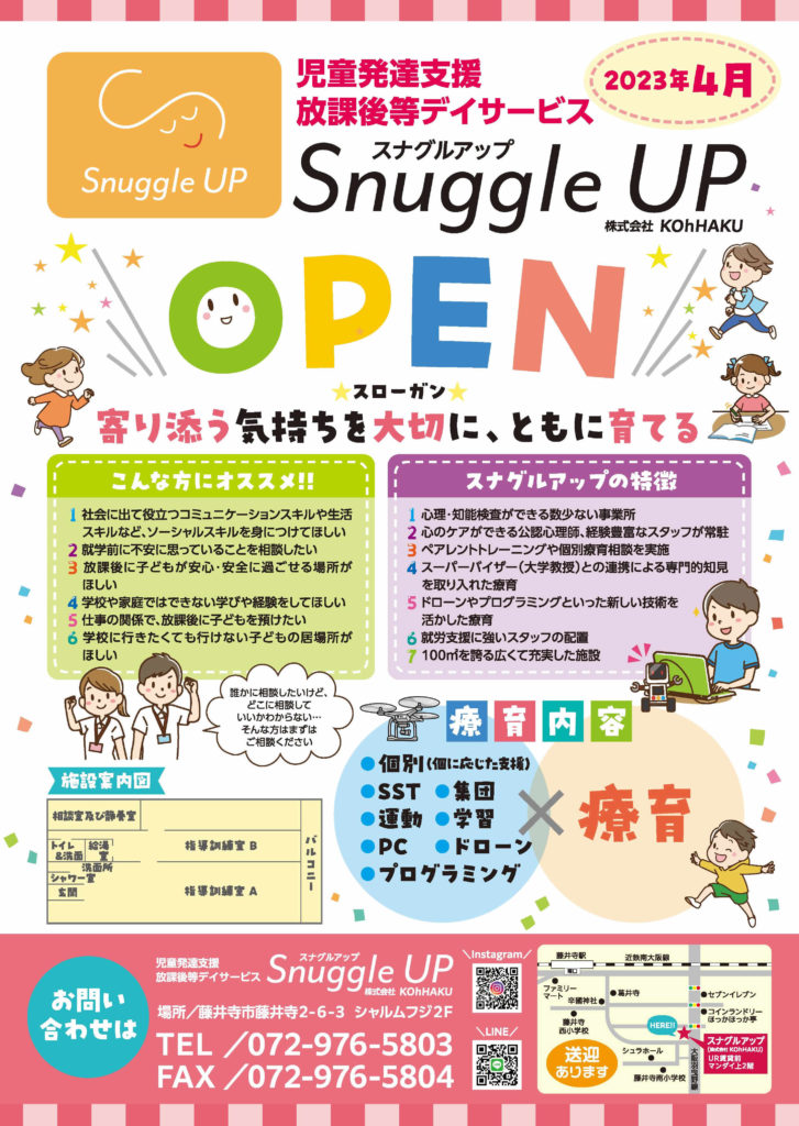 大阪市藤井寺市で4月1日よりオープンする児童発達支援・放課後等デイサービスの施設です。