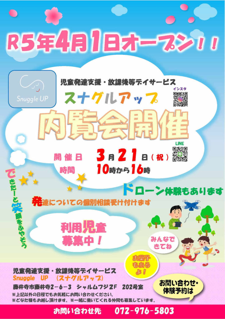 Snuggle UPは4月1日オープンに向け、3月20日に内覧会を行います。詳しくはこちら!